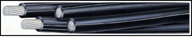 HT ABC (three phase) 3-cores supported by a bare ‘messenger’ or ‘catenary’ to prevent straining the PVC & XLPE insulation.